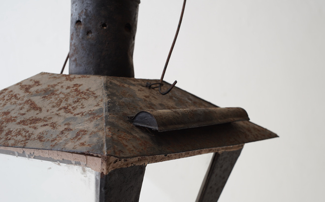 大きめのサイズ感が魅力的な古いランタン。シャープなフォルムが美しい。ガラスを抜き差しする仕組みも良いディティール。