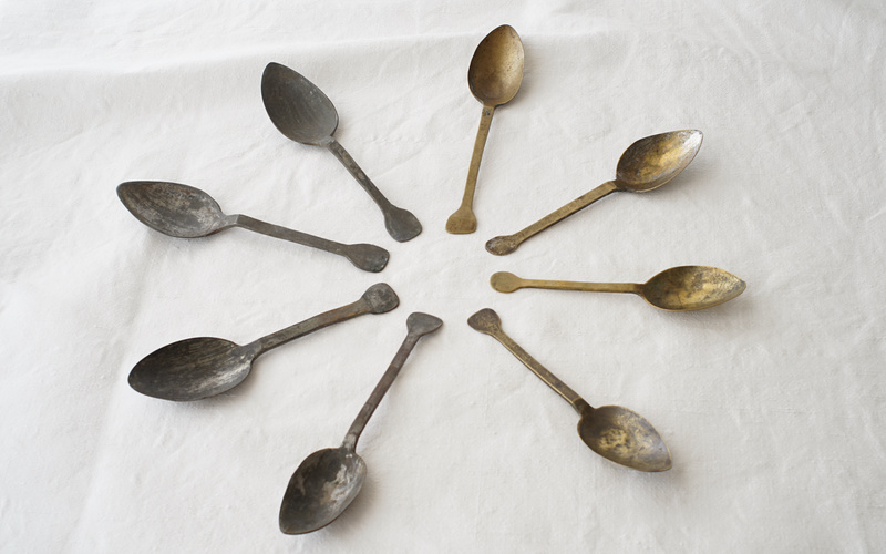 古手のスプーンで日常使いにできるのが嬉しい。枯れた風合いのものはユーティリティスプーンとして、ツヤのあるものは食事用にもおすすめしています。