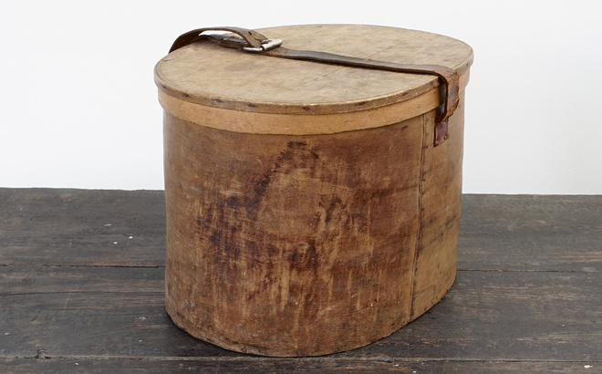 フランスアンティークのハットボックス。曲木で作られた暖かみのある雰囲気の良い木箱。