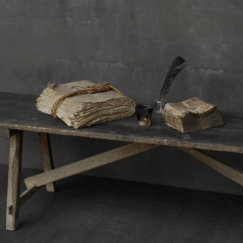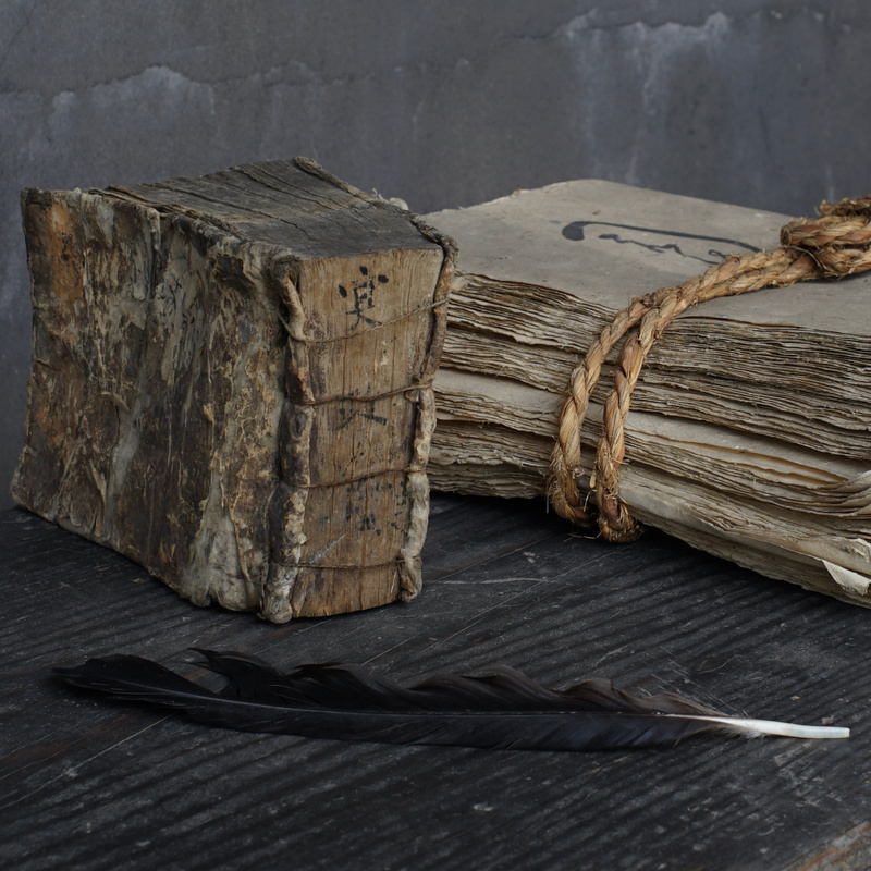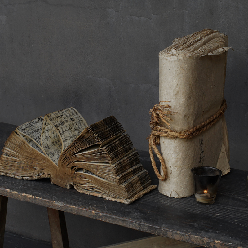 深い風合いが魅力的な江戸時代の古書と冊子。置いてあるだけで絵になる風景、インテリアオブジェとして楽しみたい。