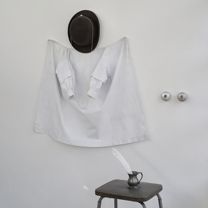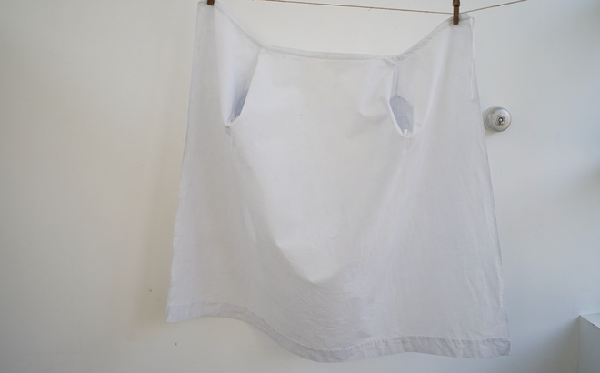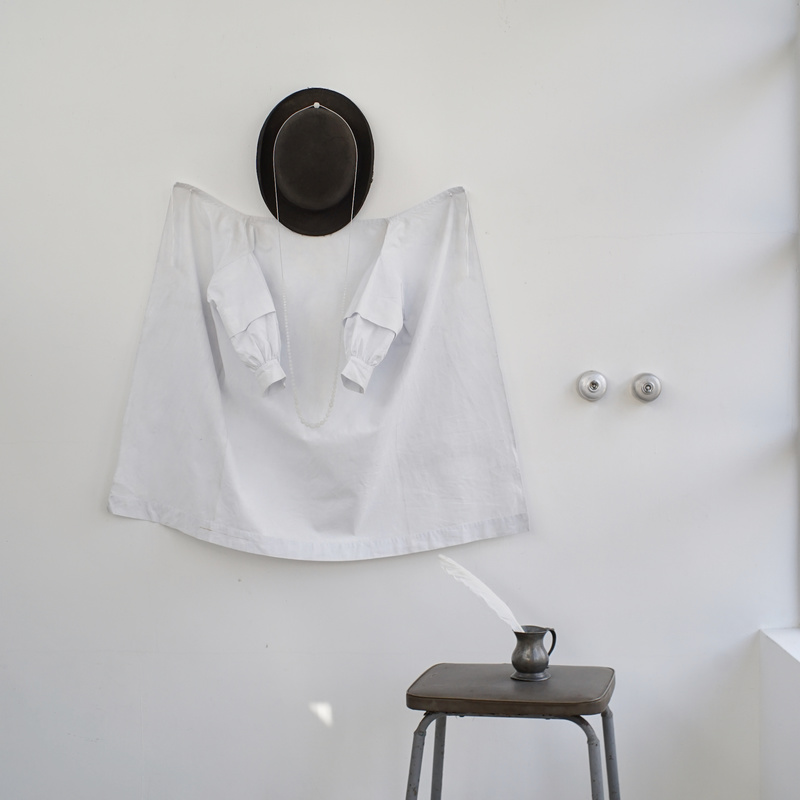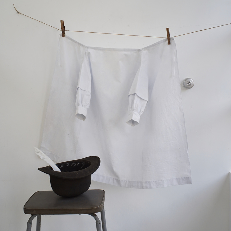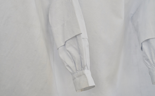 一枚の布に小さな袖が付いたような作り、佇まいが魅力的。