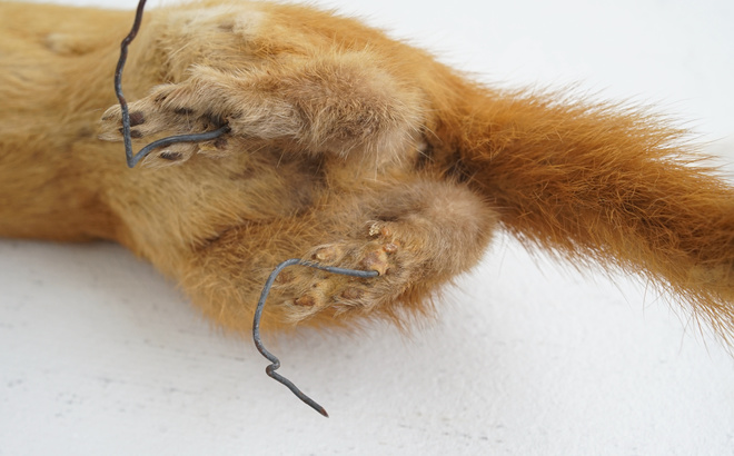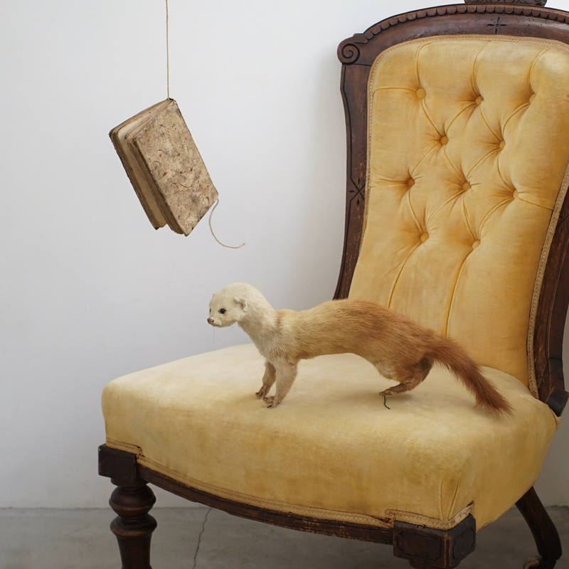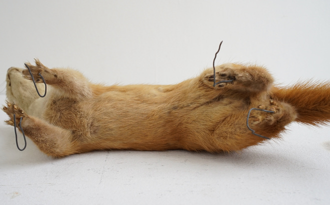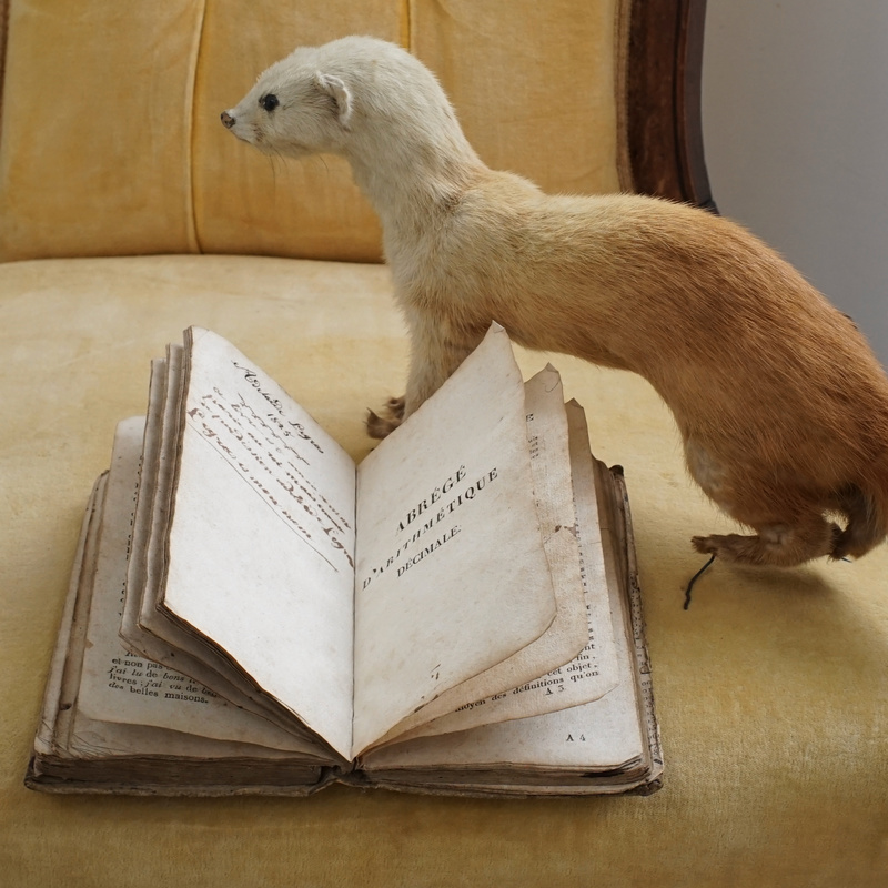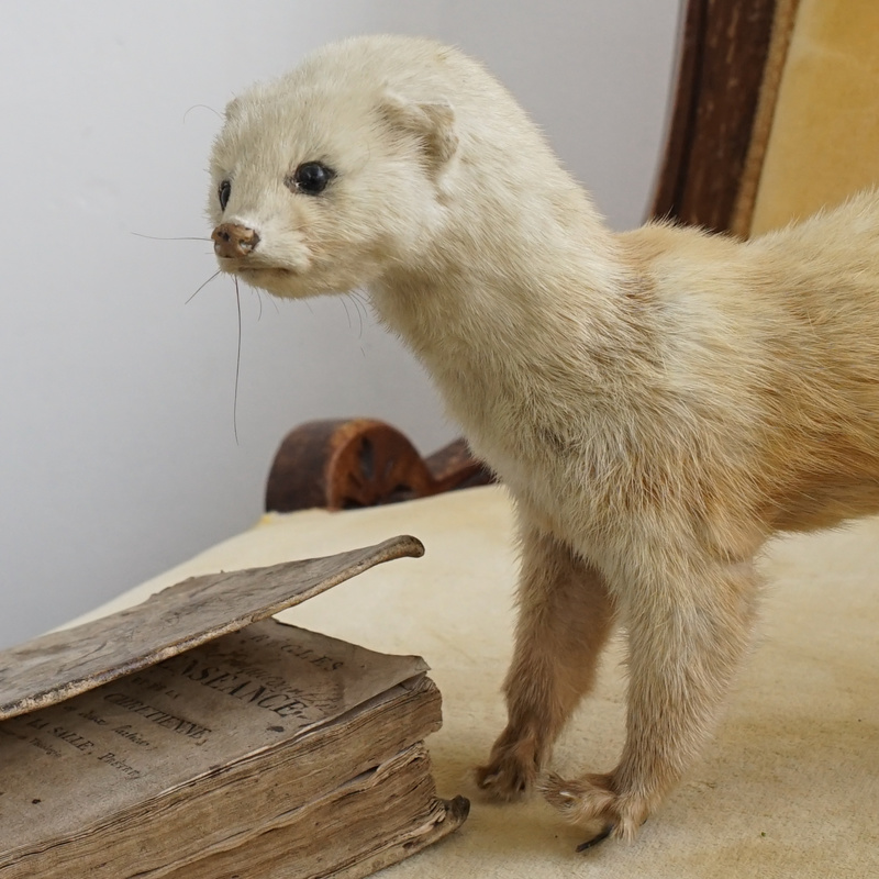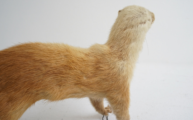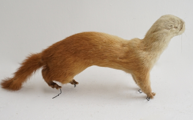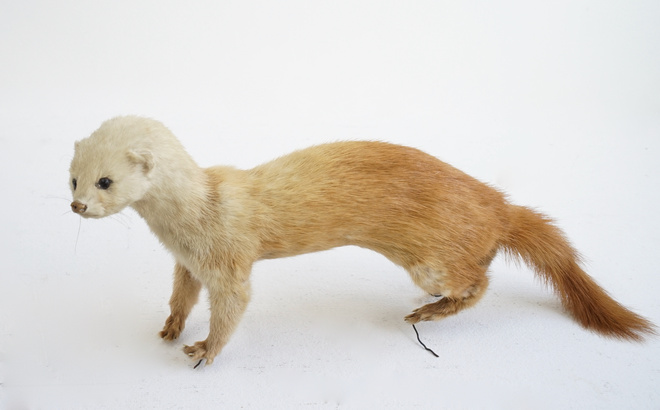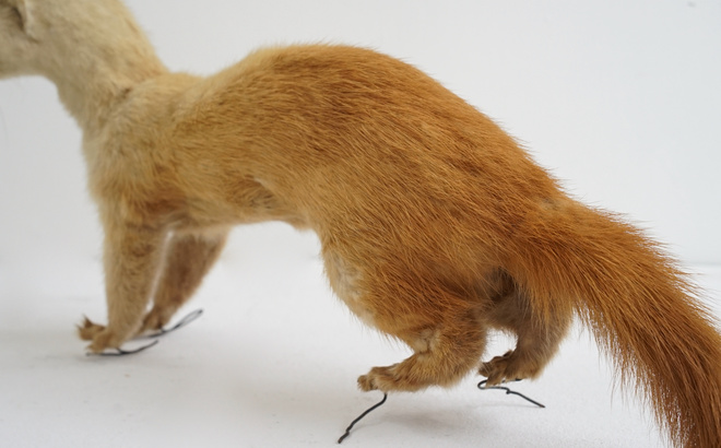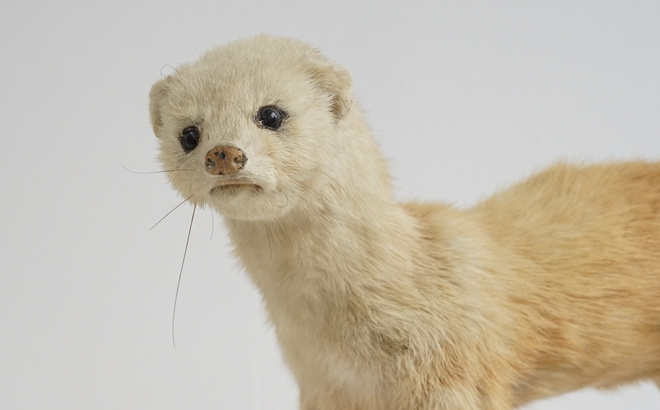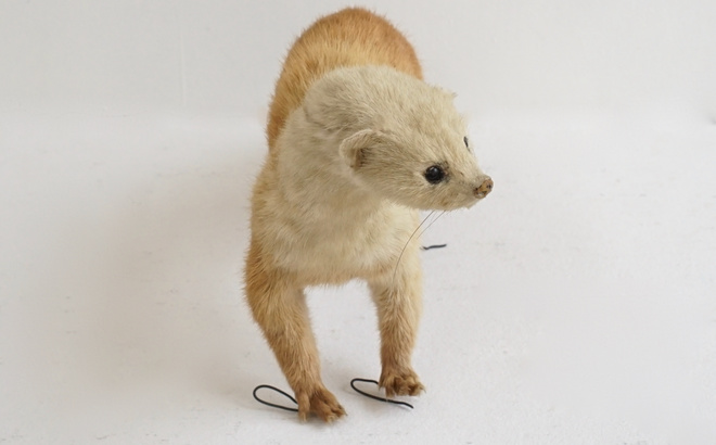 古いテンの剥製。可愛らしい表情や佇まいも魅力的。