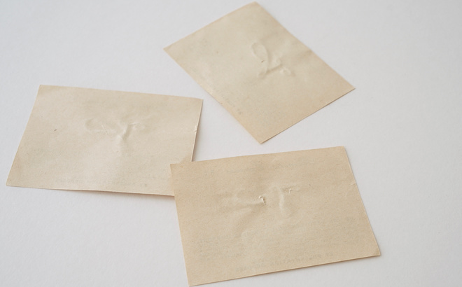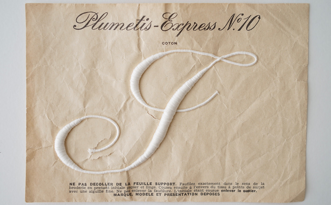 幾重にも重なった厚みのあるコットンの糸が美しい文字、シートデザインも美しくコレクションにおすすめです。