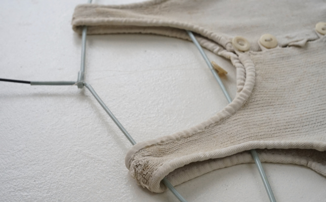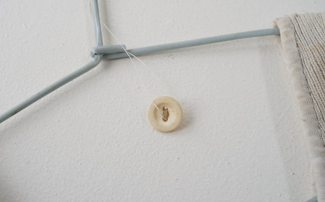 日本で見つけたものですが欧米のものでしょう。一つだけ無かったボタンはフランスで見つけた同手のものを吊り下げています。
