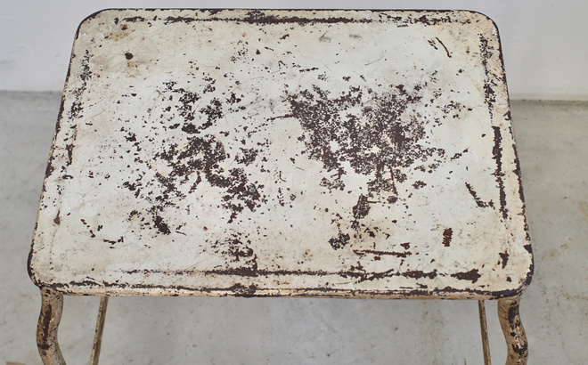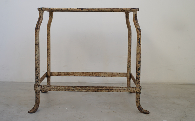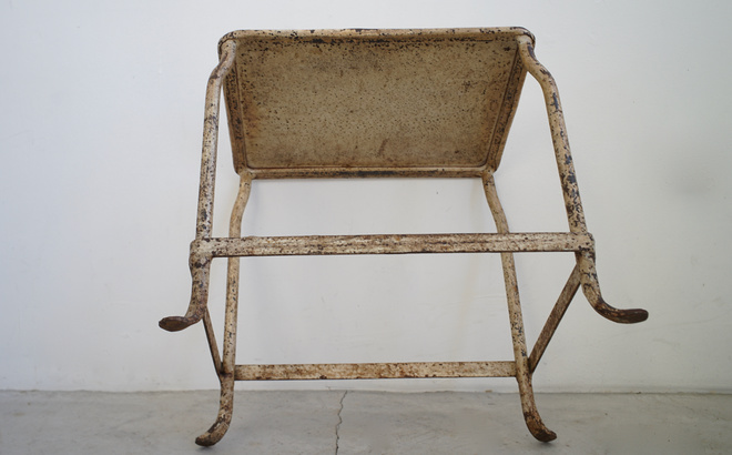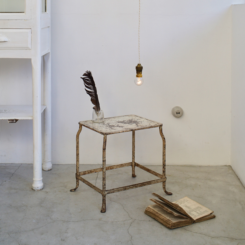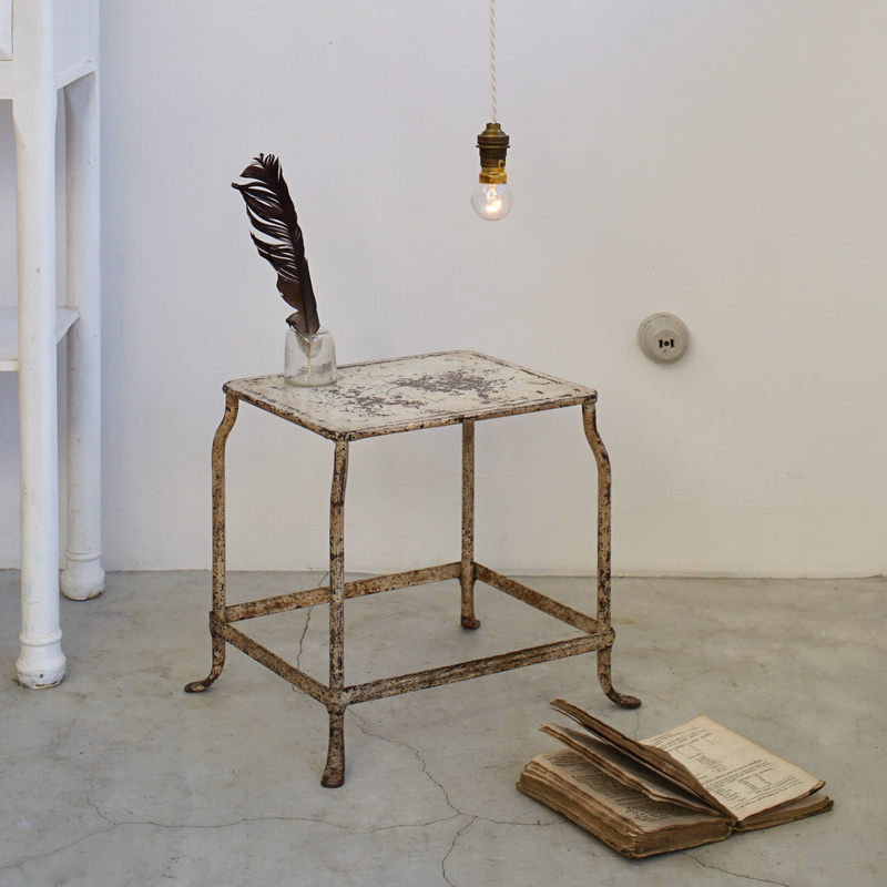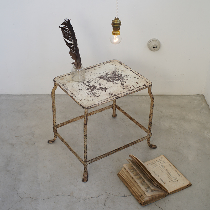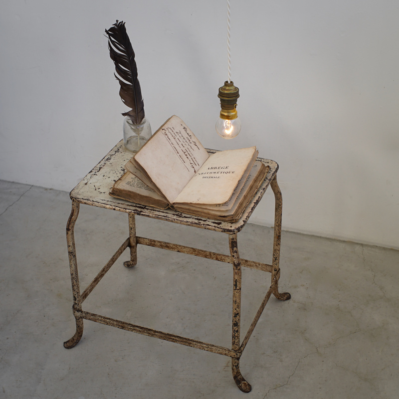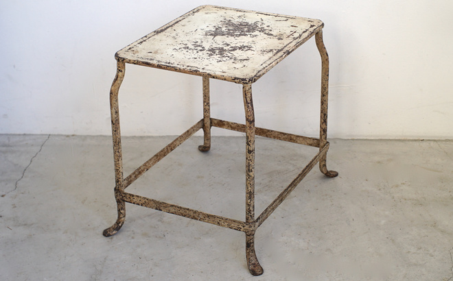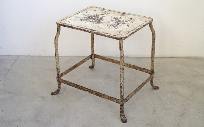 フランスの古いステップスツール。使い込まれたアイボリーペイントが魅力的 。