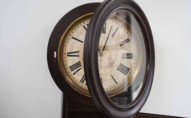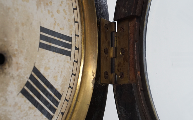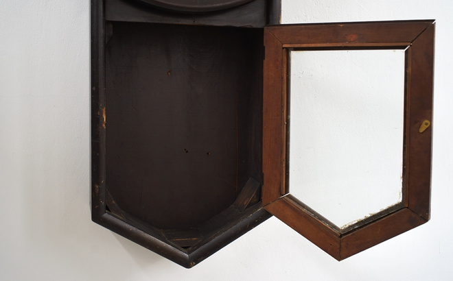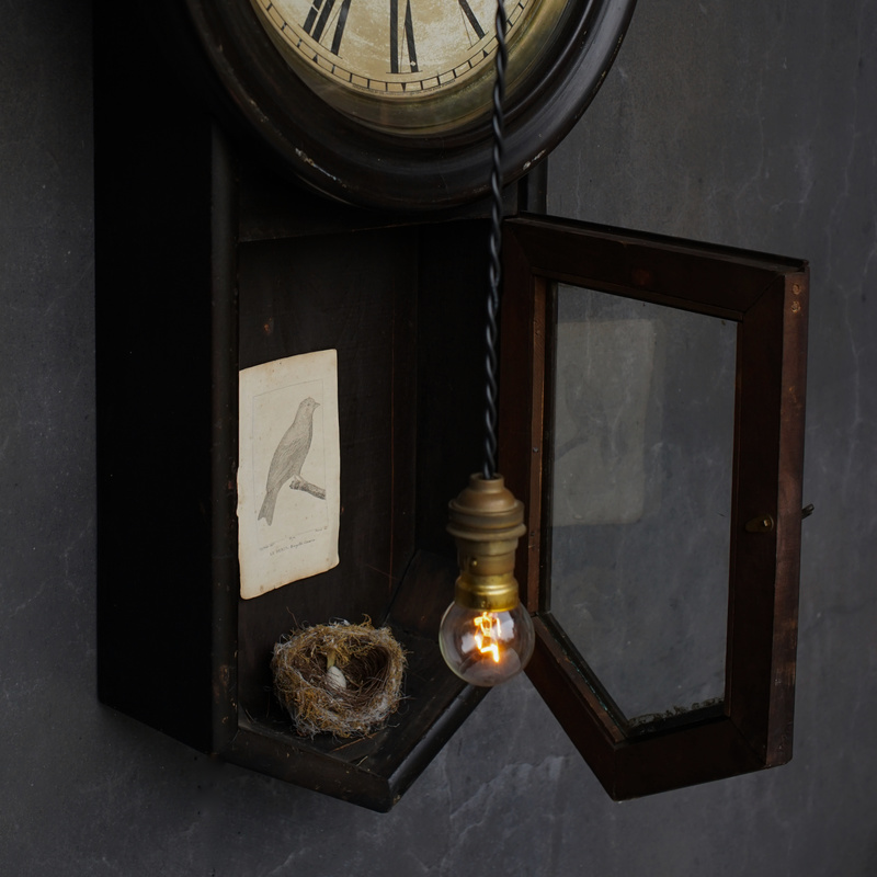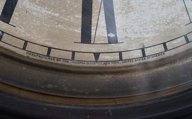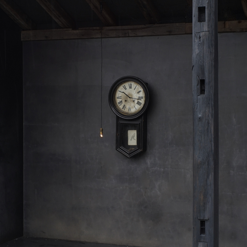アメリカの古い壁掛け時計、1854年創業のアンソニア社のもの。明治時代に輸入された一台、お屋敷や洋館で楽しまれたことでしょう。