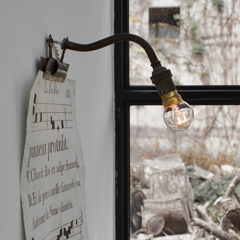 フランスの古いブラケットライトに大きめサイズでシンプルでかっこいいデザインのフランスのアンティーククリップを組み合わせました。