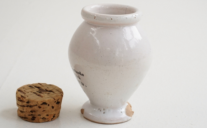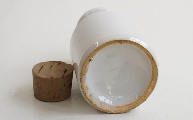 スパイスやポプリ入れに、インテリアで棚に並べて楽しみたい。どちらもフランスで見つけた古いコルクをセットしました。